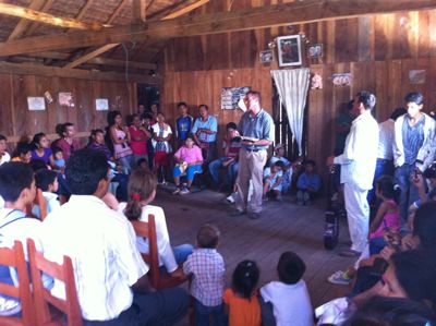 This past month our sister church in Cobija Bolivia celebrated it’s 6th anniversary. I was invited to travel up with our assistant Isaac to participate in their anniversary conference for three days. We arrived on Friday and the conference started that same night. There were special activities each night with the young people singing and doing evangelistic skits. On Saturday night Isaac preached on “It’s still not the time” about how often we make excuses saying “now is not the time but later I will surrender and serve the Lord”. We had great services each night with several salvation decisions and many others for service to the Lord. On Sunday morning a group of 40 or more loaded into a bus and we traveled for almost two hours on dirt roads to get to a small town in the jungle called Buyuyo. Some time ago two of the men from the church in Cobija moved to this area for work and when they couldn’t find a church to go to they started Bible studies with some of the teenagers and people from the town. The Bible study began to grow and more people kept getting saved until they are now having full service in the house of a family that attends. It was amazing to see close to 80 people packed into this simple structure that was their house. It was made from wood planks and had a thatch roof and you could even see the chickens running under the house through the cracks. We praise the Lord for the work that the Laura family is doing in the northern part of Bolivia and ask that you pray for them and the two works that they have. The church in Cobija is in the second phase of their building project and in need of funds to put the floor/roof on the two rooms they have built. The floor will be made of rebar and concrete and will const roughly $2500 to finish. If you would like to help with this project please let us know. kwhite@mwbm.org.