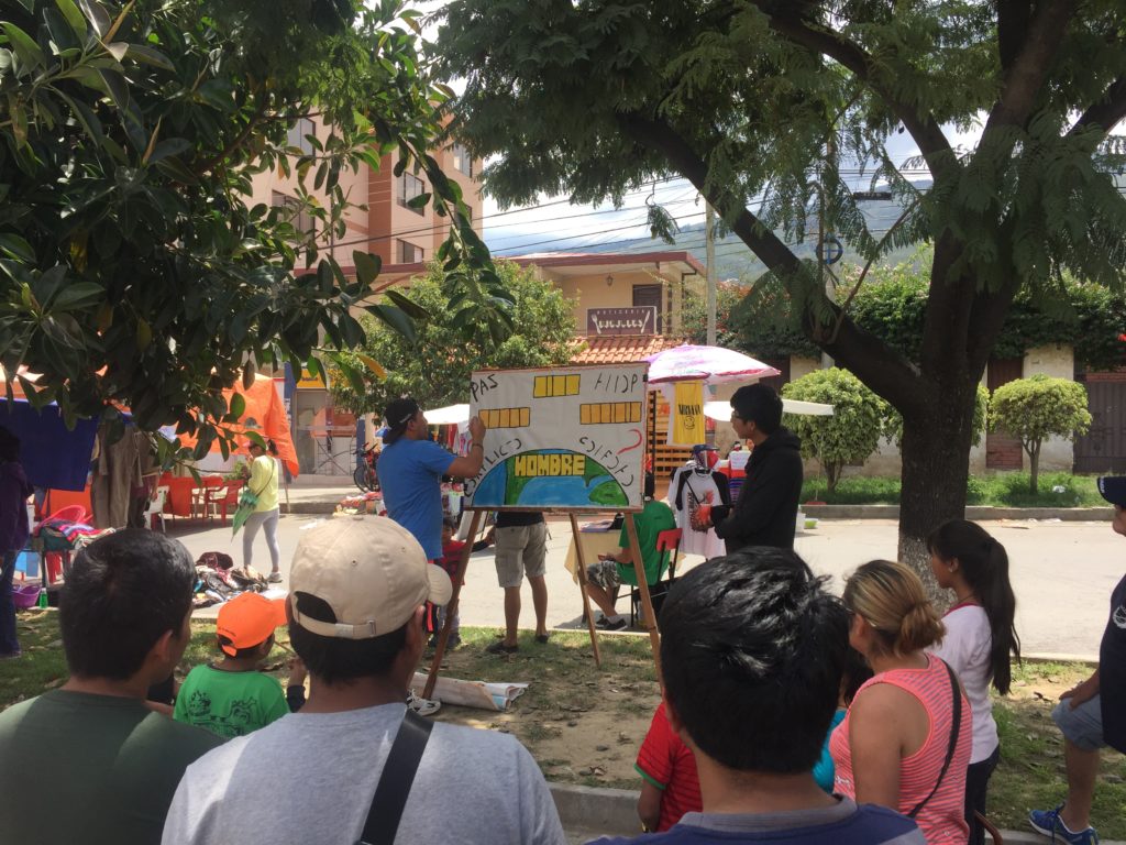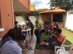 Here in Bolivia, four times a year, we have what is called Pedestrian Day. It is a day when no cars are allowed on the streets from 9:00 am to 5:00 pm in the whole city. Usually we cancel the morning service and just have an evening service but this past Sunday we decided to have a special activity at our new church. Since there were no cars allowed, we had to walk 45 min to get to church each way, although it wasn’t all up hill and it wasn’t snowing. 🙂 We had service as usual with almost 30 in attendance in spite of it being more difficult to get there. Afterwards we all went out on the street and did three different presentations where we shared the gospel through painting. At the end of each presentation we would pass out tracts to those who had listened. After the last presentation, we had 4 people raise their hand that they had prayed to be saved and wanted more information about the church. After passing out tracts we went to one of the members house, that was close by and had a cookout. We finished the afternoon with some games and soccer and then walked the 45 minutes back home. As you can imagine, by the time we made it home, we were very exhausted. In all we were excited to get the gospel in the hands of many people from the neighborhood where we are starting the church. Please pray that we can reach out to many of them that need the gospel.