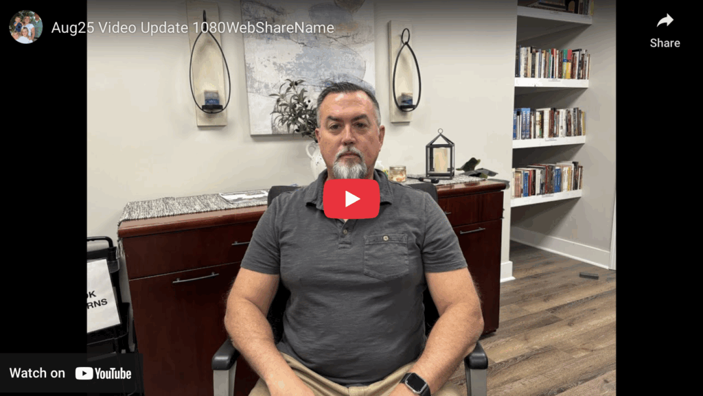 August Video Update August 19, 2025 by Kevin White Share this: Click to share on Facebook (Opens in new window) Facebook Click to share on X (Opens in new window) X