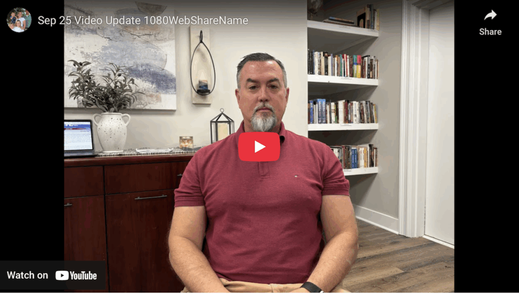 September 25 Video Update September 9, 2025 by Kevin White Share this: Click to share on Facebook (Opens in new window) Facebook Click to share on X (Opens in new window) X